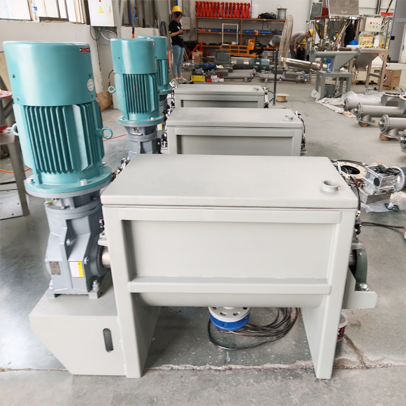 Quando o equipamento está em funcionamento, as cintas helicoidais interna e externa giram a velocidades diferentes.A correia helicoidal externa empurra o material de ambas as extremidades do recipiente de mistura para a área centralA banda helicoidal interna transporta o material da área central para ambas as extremidades, criando uma circulação convectiva forçada do material dentro do recipiente.Este padrão bidirecional de movimento de empurrão permite que o material seja misturado rápida e uniformemente através de corte contínuoMesmo para materiais com diferenças significativas de densidade, alta viscosidade ou grande capacidade, pode alcançar o efeito de mistura desejado em tempo relativamente curto,e também pode reduzir a mistura de zonas mortas, assegurando a consistência da mistura dos materiais.