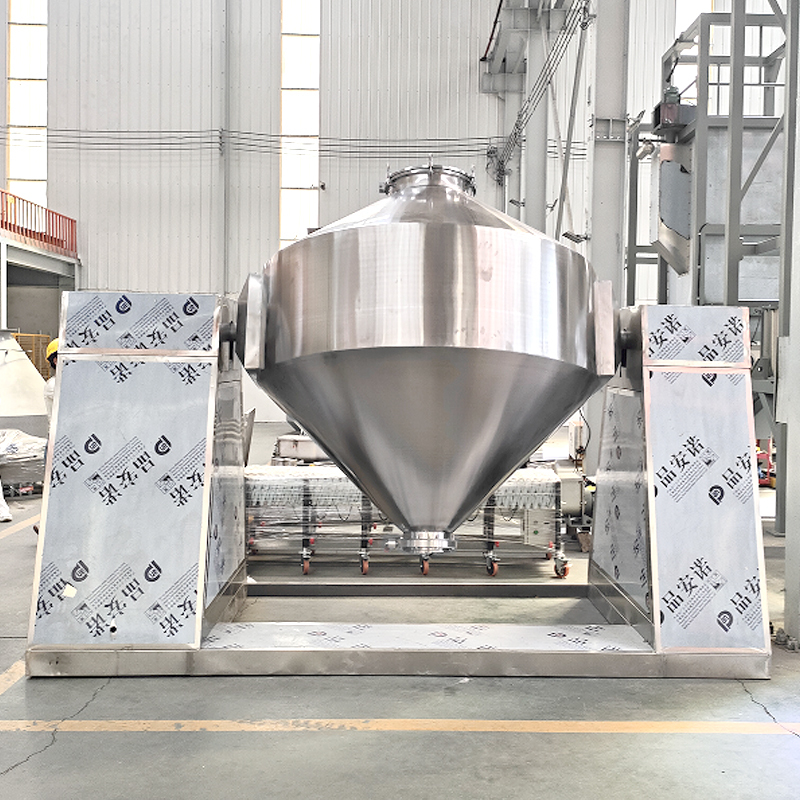 O misturador de dois cones é um equipamento eficiente de mistura de pó. Seu corpo principal é composto por dois cilindros cônicos conectados e é accionado por um motor para girar em torno de um eixo horizontal.Seu design de vedação reduz efetivamente a fuga de poeira e é amplamente utilizado para misturar pó e materiais granulares em indústrias como medicinaA selecção da capacidade do equipamento é flexível, a operação é simples, a uniformidade de mistura é elevada, a quantidade de material residual é baixa,e o projeto estrutural é conveniente para limpeza e manutenção, satisfazendo os dois requisitos de elevada eficiência de mistura e elevada limpeza na produção por lotes.