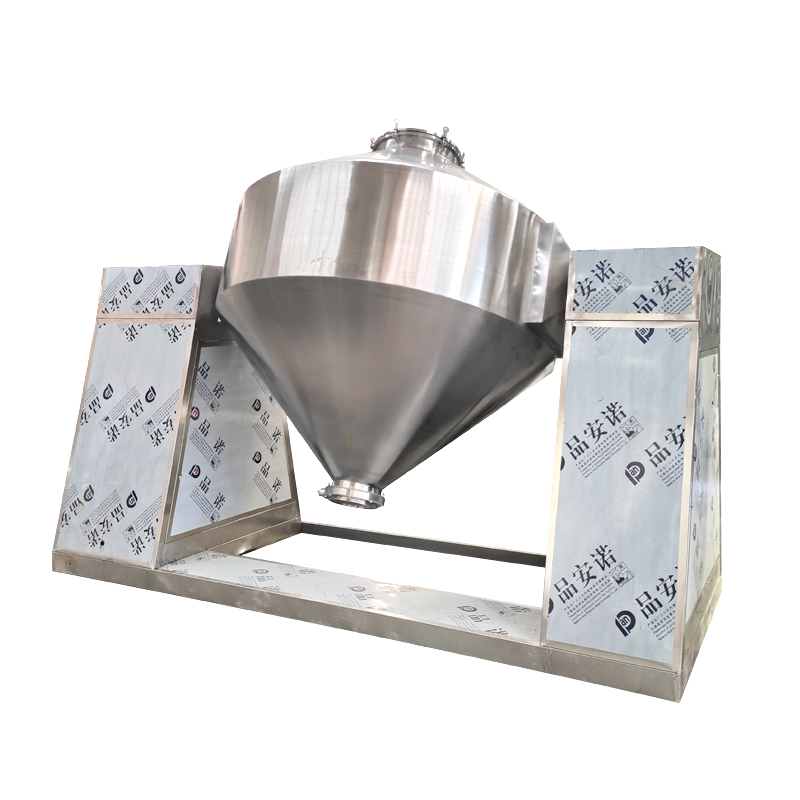 O misturador de cone duplo é um equipamento de mistura de pós amplamente utilizado em indústrias como farmacêutica, alimentícia e química. Sua estrutura principal consiste em dois cilindros cônicos unidos, que giram em torno de um eixo horizontal acionado por um motor. Ele apresenta alta eficiência de mistura, ausência de cantos mortos e resíduo mínimo. Além disso, pode ser equipado com funções como alimentação a vácuo e atomização por spray, de acordo com os requisitos. É adequado para a mistura de materiais secos e semi-secos e tem um desempenho excepcional em cenários onde alta precisão de mistura e fluidez do material são necessários.