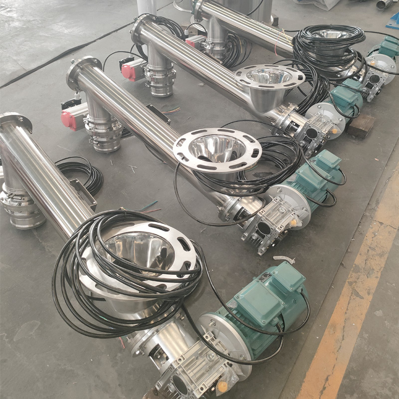 1O transportador de parafuso transporta o material misturado do misturador de fita para um transportador de parafuso horizontal