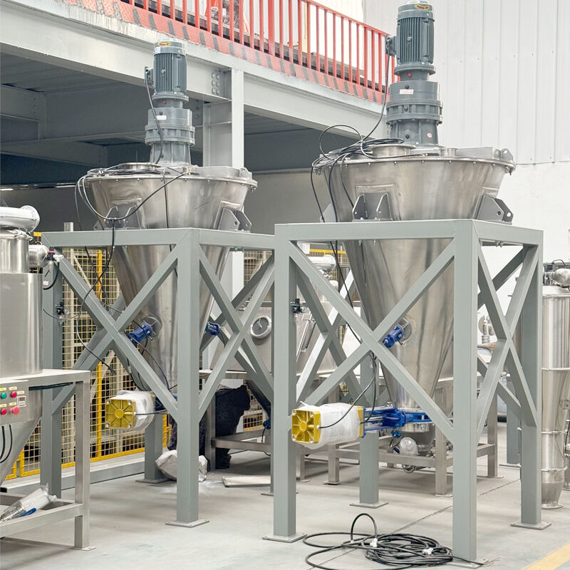 The conical mixer is a well-designed mixing equipment, renowned for its unique conical cavity and efficient double-screw agitator. It can achieve rapid, uniform and gentle mixing of powder, granules and other materials, while ensuring thorough and residue-free discharge. The equipment operates smoothly, has low noise, and has a smooth interior that is easy to clean. It fully complies with strict production standards in industries such as food and chemical, making it an ideal choice for those seeking efficient and reliable mixing processes.