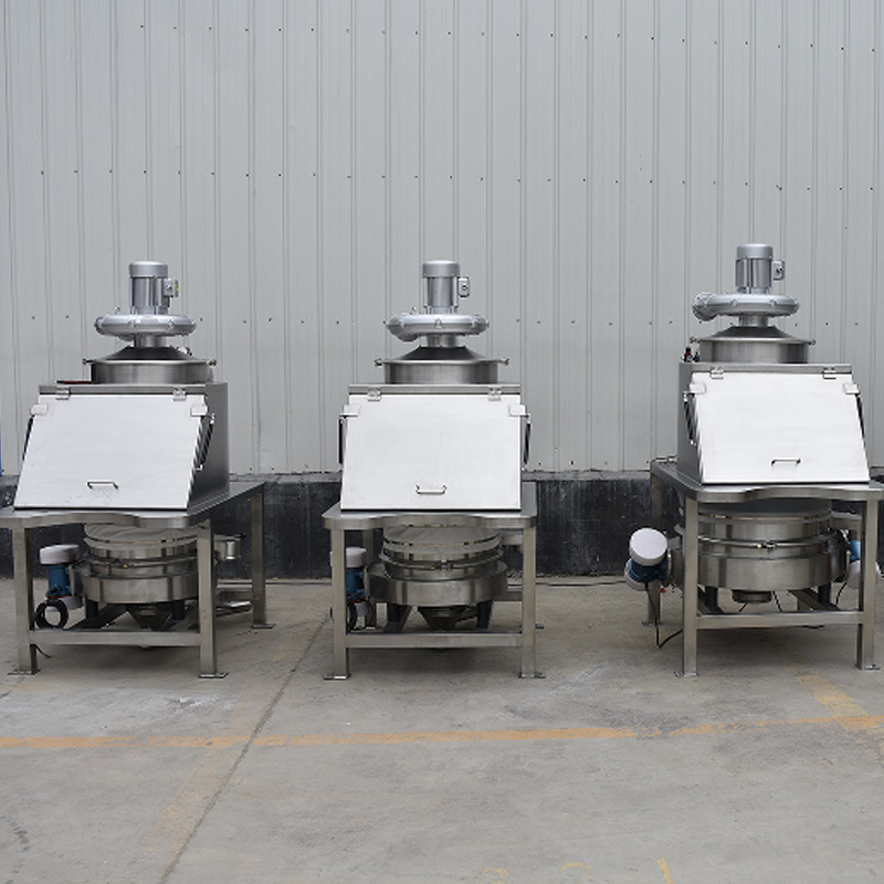 When the materials are unpacked in the sealed compartment of the feeding station, the negative pressure system immediately absorbs the dust, ensuring that the materials fall down into the downstream direct-discharge sieve under the influence of gravity. The direct-discharge sieve vibrates to quickly disperse the materials on the sieve surface, allowing the qualified fine materials to be vertically discharged, while the coarse materials are separated to the side. The entire process is continuously and automatically completed in a closed system, achieving dust-free operation and rapid classification.