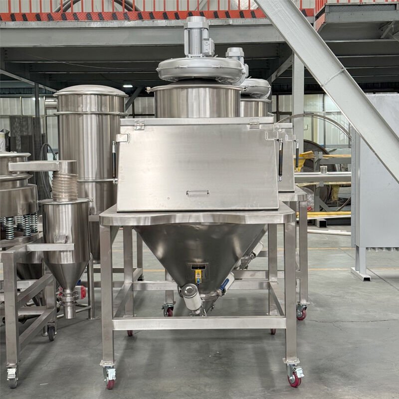 A estação de alimentação livre de poeira é um equipamento de tipo fechado projetado especificamente para o processo de alimentação de pós e materiais granulares. Ele pode controlar efetivamente a dispersão de poeira, garantindo a limpeza e segurança dos materiais durante o processo de transferência. Este equipamento é geralmente equipado com um sistema de filtragem, uma interface de alimentação conveniente e um dispositivo de coleta de poeira, o que pode melhorar significativamente o ambiente da oficina, reduzir a perda de material e garantir a saúde dos operadores. É amplamente utilizado em indústrias como alimentos e produtos químicos que possuem altos requisitos de limpeza.