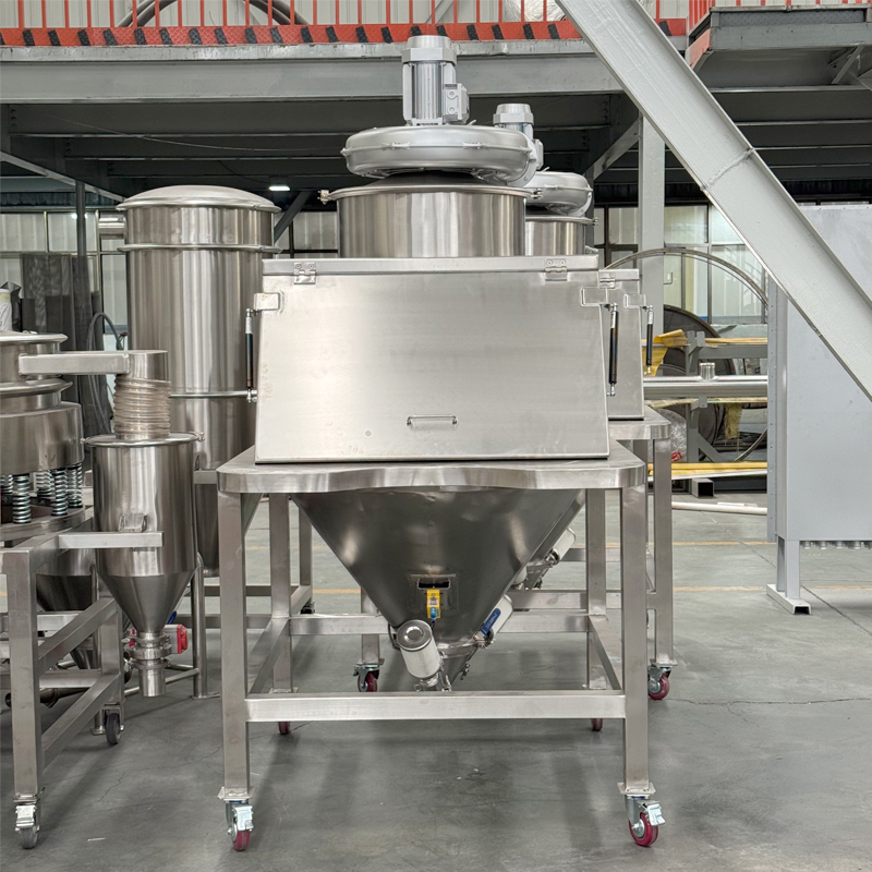 O princípio central de sua operação reside na sinergia da remoção de poeira por pressão negativa e isolamento físico: Após a entrada dos materiais na estação de alimentação, o ventilador embutido começa a operar, criando uma pressão negativa estável no funil de alimentação, que suprime a poeira voadora com o fluxo de ar direcionado e a atrai para o sistema de filtragem integrado, alcançando assim a separação da poeira do ar. Este equipamento pode melhorar significativamente o ambiente da oficina, reduzir a perda de material e garantir a saúde do pessoal. É amplamente utilizado em indústrias como alimentos e produtos químicos que possuem requisitos rigorosos de limpeza.
